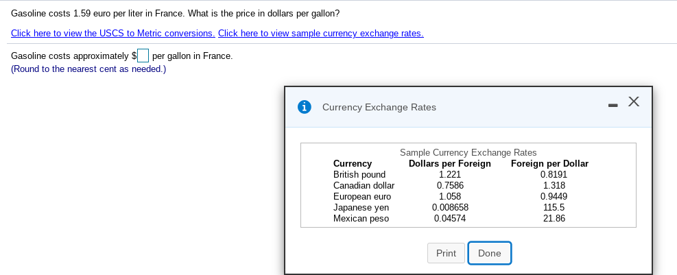 Solved Gasoline Costs 1 59 Euro Per Liter In France What Is Chegg Com
